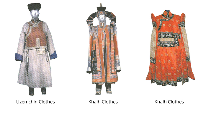 Before the revolution, all social strata in Mongolia had their own manner of dressing. Livestock-breeders, for example, wore plain dels, which served them both summer and winter. The priests wore yellow dels with a cape or khimj, thrown over it. Secular feudal lords put on smart hats and silk waistcoats.