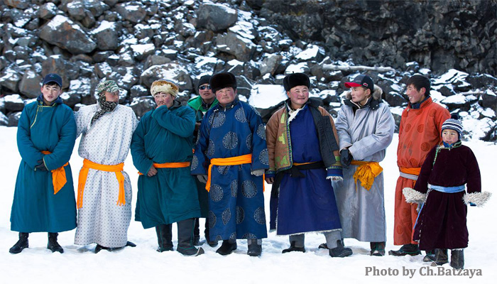 Each ethnic group living in Mongolia has its own del distinguished by cut, colour and trimming. The distinctions go unnoticed by foreigners, yet for the Mongols they are obvious.