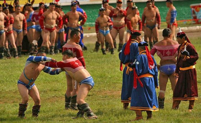 Wrestling is the most national and popular of all Mongol sports. It is the highlight of the Three Manly Games. Historians claim that Mongol-style wrestling originated some seven thousand years ago. Hundreds of wrestlers from different cities and aimags of the country take part in the national wrestling competition.