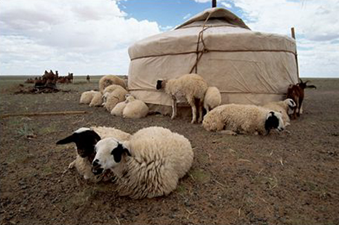 The Mongols call a sheep 'khoni’. Mutton is the most favorite meat of the Mongols . The original Mongolian sheep had a straight and coarse hair, it is good for tough weather. Skin is for coats and shoes, wool is for felt, carpet and clothes, milk is for sour cream and cheese. The Sheep is a symbol of submissiveness and weakness since it keeps quiet when it is killed.