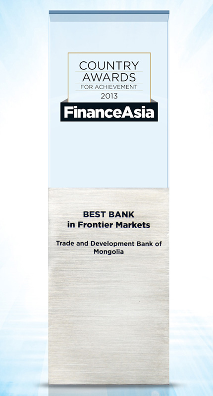 - “Best Bank of Mongolia 2012” award from “FinanceAsia” magazine