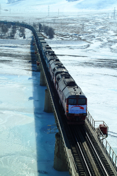 Mongolia’s most important transportation artery is the Trans-Mongolian Railway (officially, the Ulaanbaatar Railway), which runs north-south through the central part of the country. It links Mongolia to Russia and China and provides the shortest overland route between Moscow and Beijing. The railway, built as a Mongolian-Soviet joint venture, utilizes the Russian broad-gauge track width and is divided into northern and southern sections. The northern section (completed 1949) extends from the Russian border via Darkhan to Ulaanbaatar, following several river valleys through the mountainous terrain. Branchlines extend to the Erdenet copper-mining area and to the Sharyn Gol coal mines. The southern section (completed 1955) runs through rolling steppe and semidesert country from Ulaanbaatar to Zamyn Üüd on the Chinese border, where wheels are exchanged for those that allow the trains to travel on China’s standard-gauge system. Another railway connects Choibalsan with the Siberian rail system. A branch was built in the 1980s to connect this line with the uranium mines at Mardai. Another planned broad-gauge line would link the coal and copper mines in the southern Gobi to the Trans-Mongolian Railway and then run eastward to Choibalsan.
