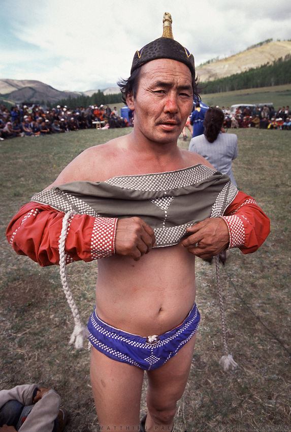 The Mongols are shy by nature. They often hide their confusion or embarrassment behind a smile. Most of the Mongols are taciturn, reticent, tolerant, and some people say, superstitious. Fussiness and inconsistency are considered undignified. At the same time, the Mongol may grow very excited when playing a game, or boil over in anger. The Mongols do not like to talk about unpleasant things. It is believed that such talk may invoke trouble. It is even more impermissible to say bad things about friends and acquaintances. If at times something unpleasant has to be said, people try to do it as tactfully and inoffensively as possible. On the other hand, expressions of good will and praise are widespread. Praise of their mother country, the beauty of the natural scenery, the hospitality of the host, etc., presents a special form of folklore. Foreign guests remark on Mongolian friendliness. The hard conditions of life, far from embittering them, gave rise to the long-standing traditions of friendliness and hospitality. The host is well aware that the wayfarer entering his ger is tired and may still have a long way to go. Of course, he has also found himself in similar situations more than once. And so he does his best to anticipate and satisfy his guest's wishes. Such specific features as Mongolia's vast sparsely populated area, its rigorous climate and nomadic economy could not fail to make their imprint on the people's behaviour and the manner in which they express their thoughts and sentiments. Over the centuries the people of the steppe have developed their own ethics of social conduct. There are many types of greeting in the Mongolian language that are used depending on the situation and the time. The townsfolk usually say "Sain bainuu?" which is equivalent to "How are you?" The expected answer is "Sain", which means "Fine". National ethics do not permit a negative answer. It is only later in conversation that you may mention your problems if you have any. Countrymen often salute each other with the question "Are you wintering well?" or "Are you spending this spring in peace?" Needless to say, the greeting should suit the season. Shepherds ask each other "Are sheep grazing in peace?" or "Are your sheep fattening well?" The word "peace" often figures in greetings and good wishes. In the Mongolian semantics it is equivalent to happiness. After all, when a person has no worries, he is at peace and, consequently, happy. In the village, the guest finding his host or hostess at work expresses specific good wishes. For instance, if the hostess is milking the cow, he says, "May your bucket be brim full of milk." If she is beating wool, he says, "May the wool be as soft as silk." If the family are playing some game, his wish will be that everyone should win if only once. The answer to good wishes is always the same: "May it be as you say." When you are talking to an elderly person whom you know you are expected to add the respectful "guay" to his name, for instance, Dorj-guay. Addressing a stranger who is older than you, say "Akh-aa" which can be translated as older brother or uncle. Family Relations also have their ethics. We say for instance, "My Wife" and the "Father of my children". One always has to use the correct form of address depending on the person's age or position. If in the cities a foreigner may safely behave like elsewhere in the world, in the countryside at every step he stumbles against all kinds of customs and traditions that he violates without even knowing it. Especially in the remote regions where traditions and customs are stronger. True, people are not offended if foreigners do something the wrong way because of their ignorance. "The ignorant will not be punished", the Mongols say. In Mongolia it is not accepted to knock at the door of a ger or say, "Can I come in?" The guest as he approaches the ger is supposed to shout loudly, "Hold the dog!" ("Nokhoi Khori!" in Mongolian) even if there is no dog, for what he actually means is to let the host know that he is coming. The host and hostess emerge from the ger wearing their hats and buttoned-up dels. As for the hats, if in Europe men take off their hats when greeting each other, in Mongolia the rules of good behaviour demand that they wear their hats in such cases. The host helps the guest dismount from his horse and takes him into the ger. To begin with, the men exchange snuff bottles. Never mind if you do not have one. You should accept the host's snuff bottle, take some snuff and return it. The bottle should never be returned with the lid tightly on. Then the hostess begins to serve tea, often made in the guest's presence. It is not acceptable to ask the guest outright where he comes from and for what purpose. He should say this himself at some point during the conversation or after asking the traditional questions about the weather, the cattle, etc. The hostess serves tea in a small bowl, holding it with both hands stretched out towards the guest, or with the right hand supporting the elbow with the left arm. The guest is supposed to accept the cup in the same fashion. It would be very proper to let down the sleeves for it is considered extremely impolite to expose your wrists. The Mongols have their own ideas about the hearth, the ger and what is inside it, and the guest should take care to respect the old taboos. It is forbidden, for example, to pour water on the hearth or throw garbage into it, to touch the fire with a knife, step over the hearth or spill milk. Whistling in the ger or leaning against the supports is considered an ill omen. In summer the host will offer you koumiss (fermented mare's milk) instead of tea. To establish friendly relations it is customary to eat off a common plate and drink from a common cup, notably koumiss. The host fills the cup and hands it over to the guest. The latter drinks a little and returns the cup to the host who refills the cup and hands it over to another guest. The host drinks