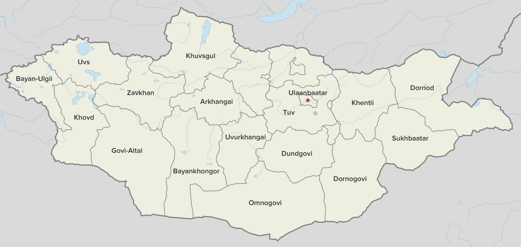 Mongolia is divided into capital city and aimags /provinces/, with further division of aimags into somons, somons into bags, capital city into districts, and districts into horoo. There are 21 aimags plus 3 "city areas ". They are Darkhan-Uul, Orhon, and Gobi-Sumber.